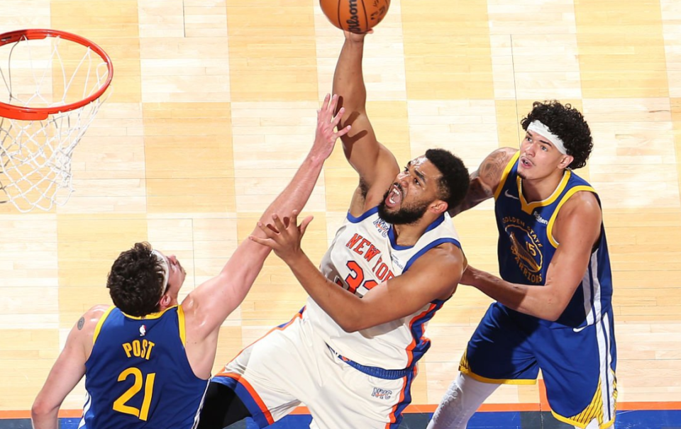 末节,阿尔瓦拉多上篮得分,唐斯中投得分。波斯特连得5分,桑托斯三分命中。克拉克森打成2+1,米罗补扣,克拉克森抛投命中,尼克斯领先7分。波斯特三分命中,桑托斯补篮得分。阿奴诺比、布伦森、桑托斯连续罚球得分,沙梅特三分命中。小佩顿、桑托斯上篮也中,勇士只落后1分。布伦森中投命中,波杰姆斯基上篮得分,沙梅特两罚两中,尼克斯领先3分,波杰姆斯基上篮得分。阿奴诺比两罚两中,波斯特失误,尼克斯险胜勇士。