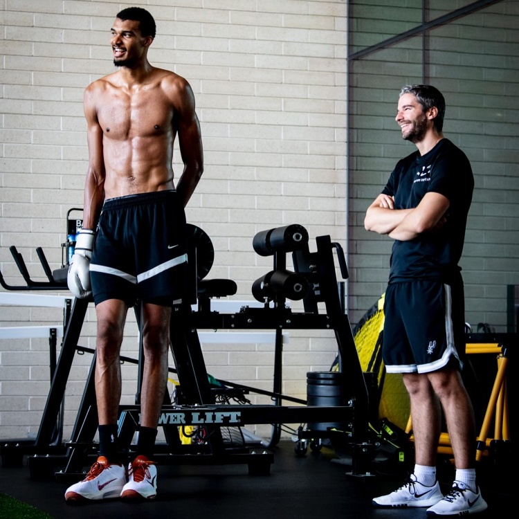 马刺体能教练晒文班身材照:肉眼可见的壮了!