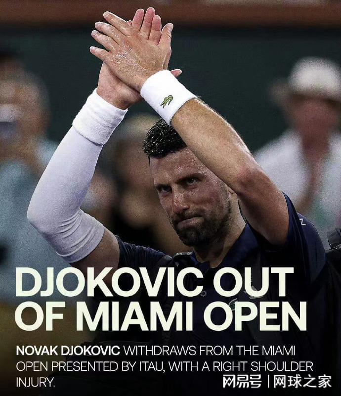 我们首先来关注一条最新消息。北京时间今晨,有外媒报道,称塞尔维亚球王德约科维奇因右肩伤势,已经决定退出即将开打的ATP1000迈阿密大师赛。在印第安维尔斯,德约科维奇就一直戴着护臂打比赛,并确认前臂有些不适。如今,他的肩部再添伤病,也就是说右臂都有些问题了。好好养伤吧!养好身体,红土赛季再见!